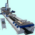 6 ejes de control: 5 ejes interpolados (X,Y,Z,A,C) y 1 eje de posición (herramienta intercambiable) Composición Estándar: 1 árbol eléctrico, 12 Kw, aire frio, 8 barras de Schmalz con doble circuito, 2 áreas de trabajo (péndulo), 4 puntos de referencia para las piezas de trabajo, 16 copas de succión, 8 abrazaderas neumáticas (1 para piezas cortas), 4 dispositivos de elevación (2 para cada área de trabajo), 1 herramienta de cambio de rotación, 16 posiciones, 1 consola móvil.